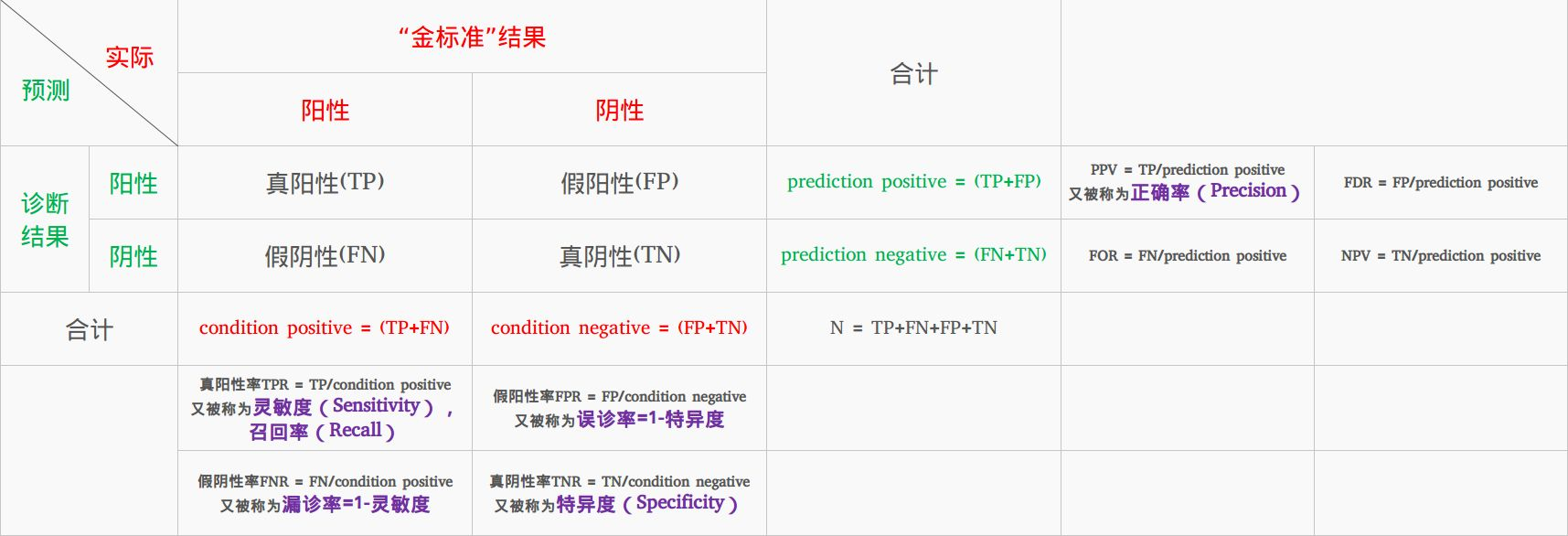 混淆矩阵 常见指标