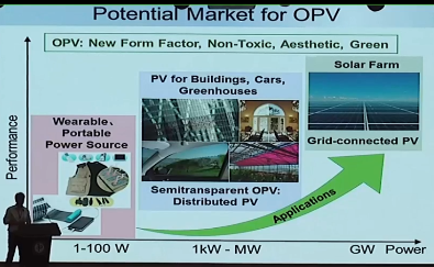 目前OPV的最大的可能应用方向是在半透明器件上,建筑,汽车和绿色房子