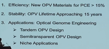 目前OPV的效率和稳定性无法与硅太阳能电池竞争,期待未来的研究。