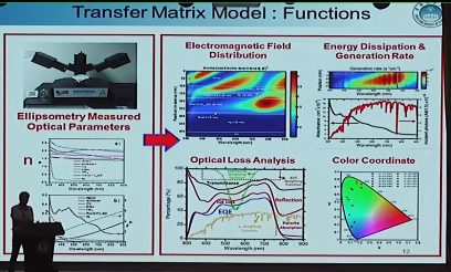 光子在太阳能电池里面的分布,是很关键的理解太阳能电池的吸收。运用传输矩阵法就可以进行模拟得到。需要知道的参数就是NK。可以得到光电场分布,激子分布,分析光学损失和颜色分析。