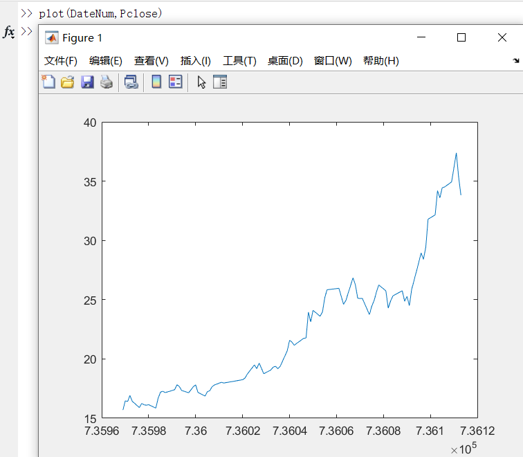 接下来,选取DateNum与Pclose变量进行绘图。