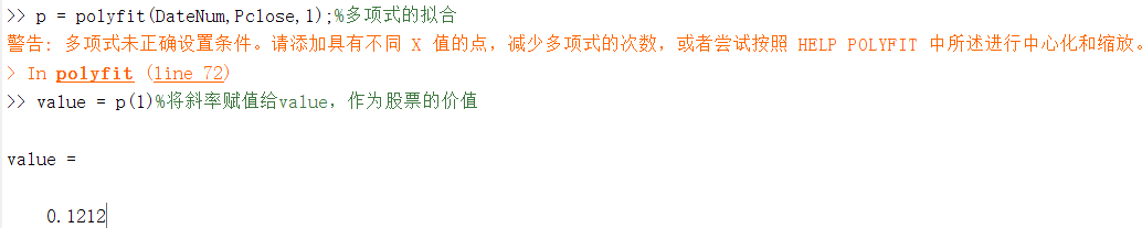 p = polyfit(DateNum,Pclose,1); %多项式拟合