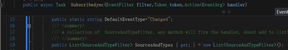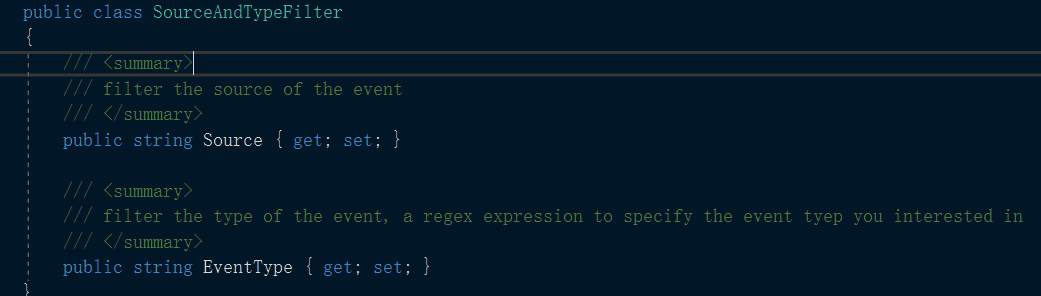 subscribe包含两个参数,分别是EventFilter和handler,handler可以自己定义一下,EventFilter的组成有数据类型为list的SourceAndTypes,组成为: