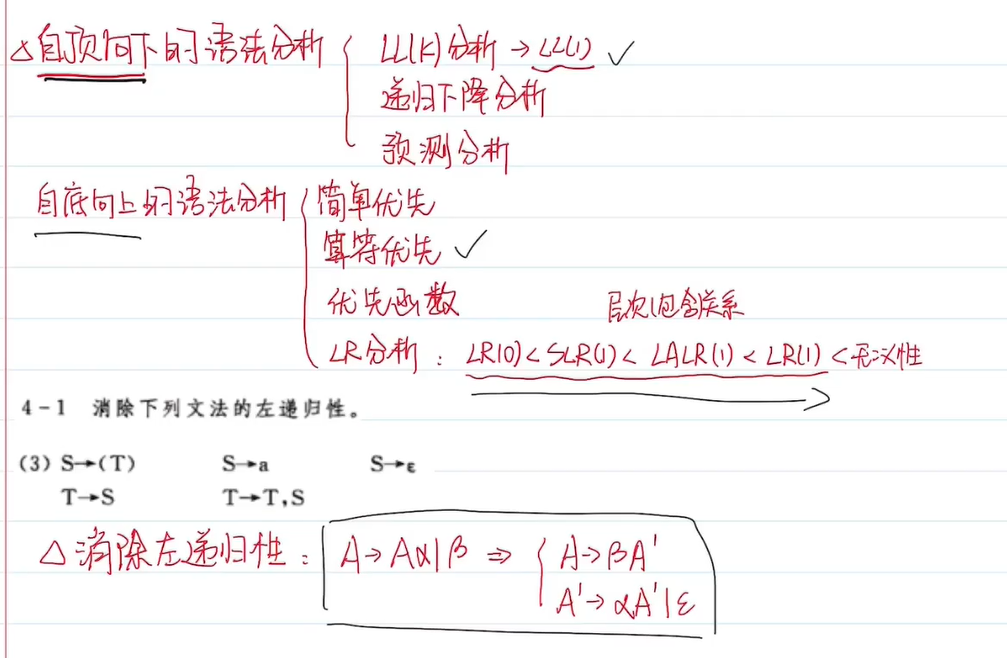 如果为非终结符,为终结符,那么对于中的每一个有: