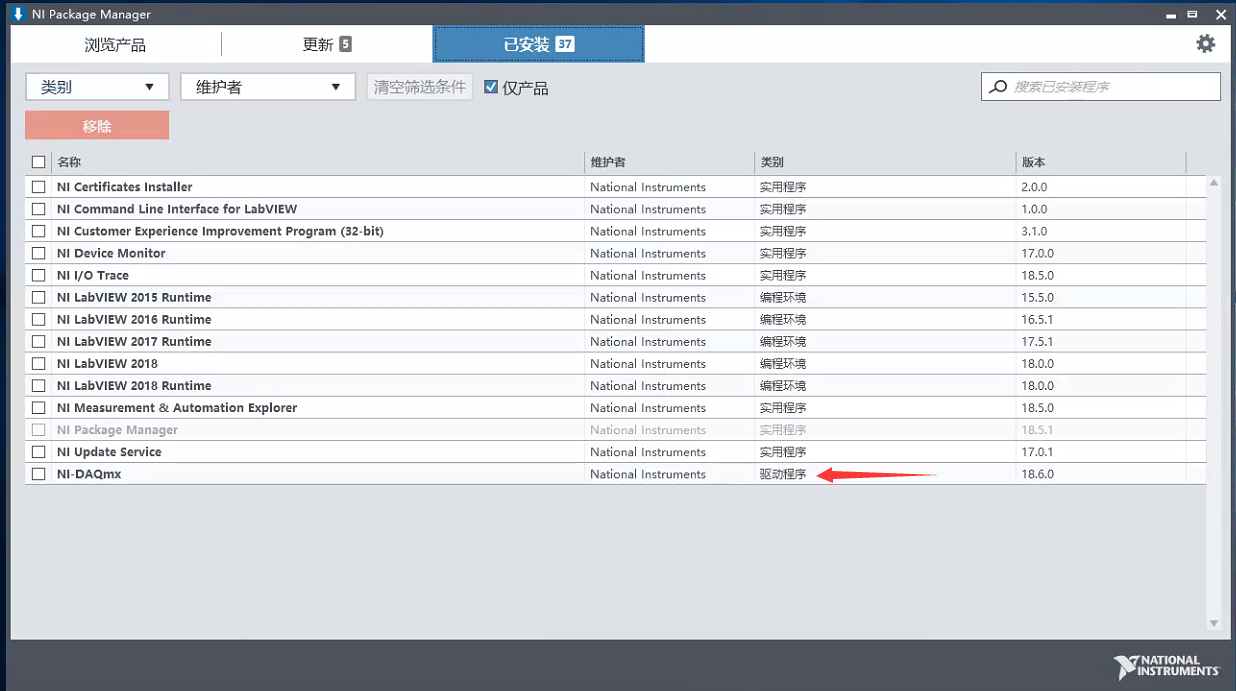 进入NI Package Manager已安装里面选择驱动程序进行移除。