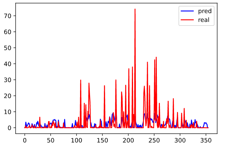 对后半段雨水量大的预测不出来,导致pred偏小