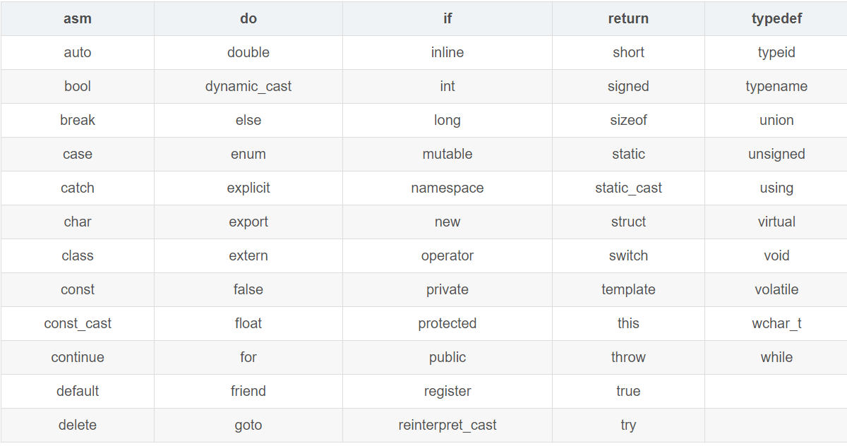 作用:关键字四C++中预先保留的单词(标识符)