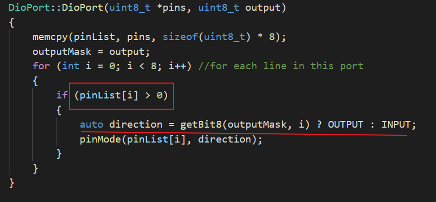 (这个地方可能理解错了,不是指定哪个引脚可用哪个不可用,可用不可用是通过PinList里面的值来指定的,>0表示该引脚可用。OutputMask用来指定的是该引脚是输入还是输出,从代码的这个地方可以看出来)