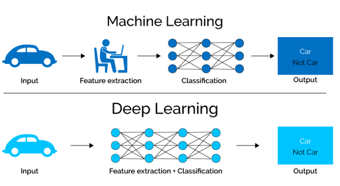 可以看到换成深度学习以后你要做的事情好像变得更简单了,模型自动就完成了特征提取的工作。