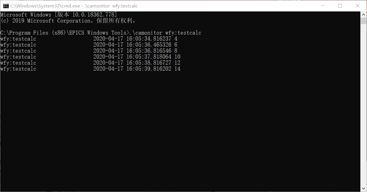 在windows epics tools目录下执行对应exe,就可以发现读取pv成功。