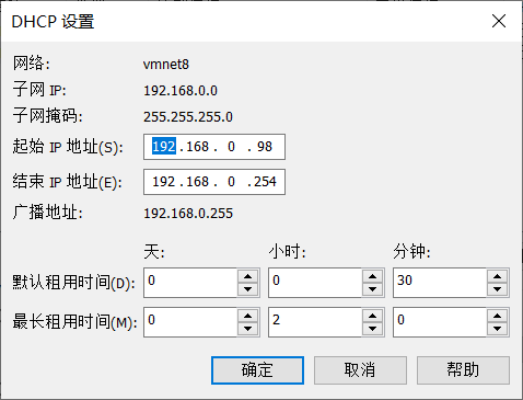 4. 如果想要虚拟机ip在某一区间,可以点击DHCP设置