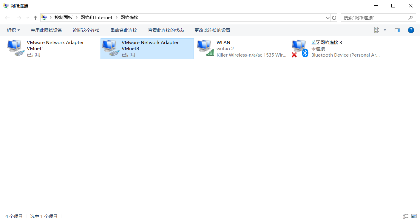 上面都确认后点开主机的更改适配器窗口,会出现虚拟机的网络连接状态。