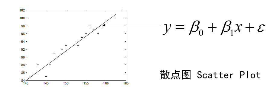 \[ y=\beta_0+\beta_1x+\epsilon \tag{2} \]