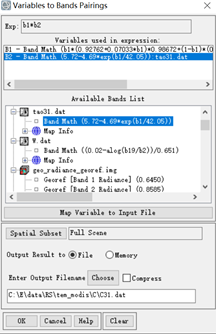 使用ENVI中的band math计算出结果 由于后续还需要用到NDVI,所以还需要对B1、B2进行定标。操作相同,不再赘述。 结果:MCTTK这种定标方式和手动定标结果有一定出入,所以暂时选择MCTK定标方式。 根据相关研究,做地表温度反演可以不用进行大气校正,所以就不进行大气校正了。