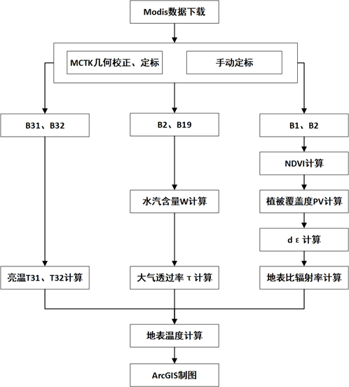 \(\varepsilon_i\) 为地表比辐射率,\(\tau_i\) 为 \(\ i\) 热通道大气透过率