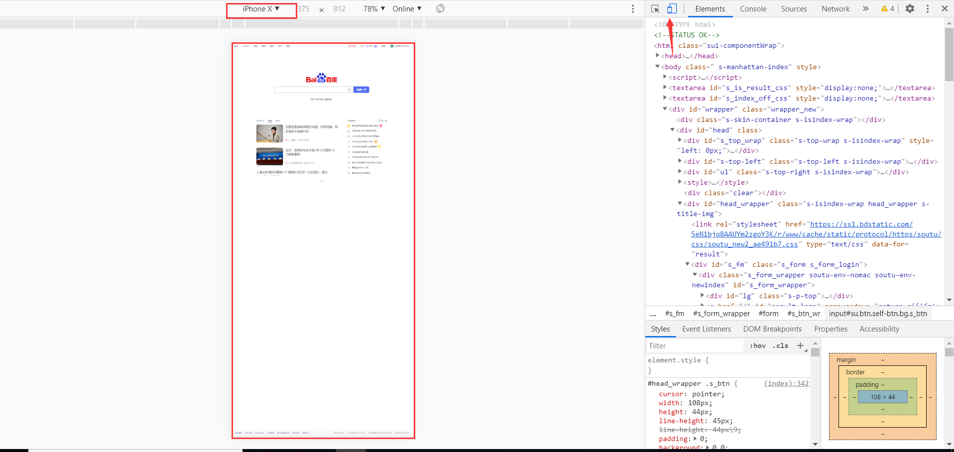 但是有时候网站布局比较复杂你在Elements中找不到你想看的那个部分,你就可以点击这个按钮: