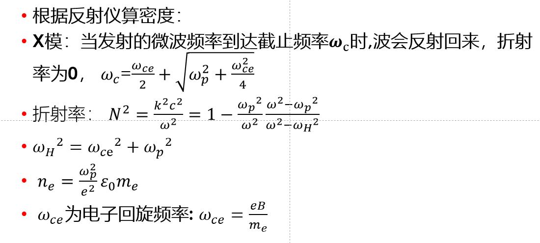 X模密度计算 | 计算反射层的密度 | 由 Vco电压 计算得到的反射角频率 Wc 由磁场强度 bt 计算得到电子回旋角频率 Wce | 反射层密度ne |