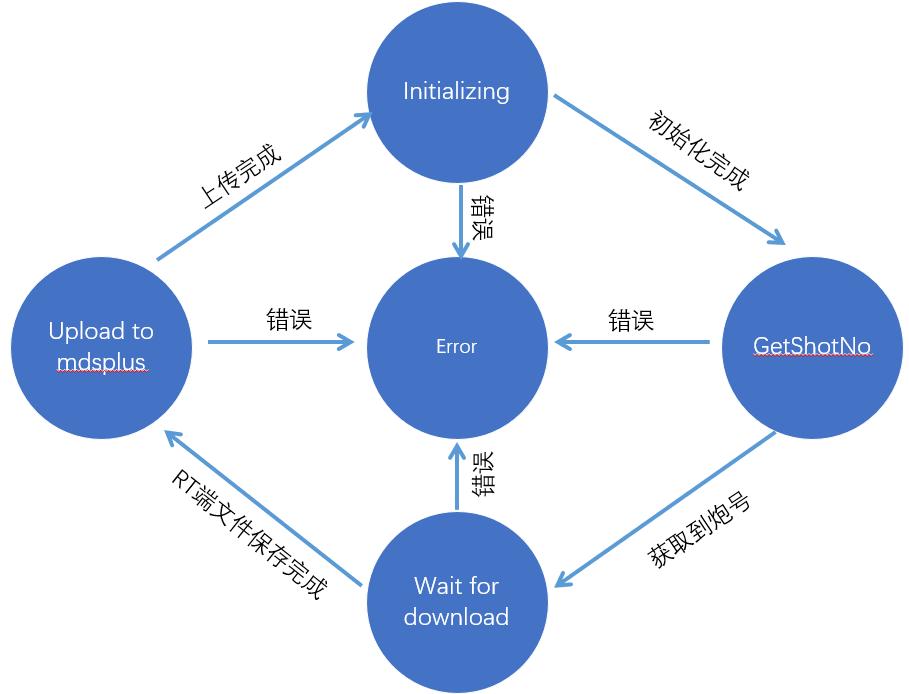另外一个定时循环用来对采集的信号进行数据处理,包括fft计算相位,计算密度,计算位移。两个循环之间的数据传递采用F IFO 进行数据传递。另一循环状态机设计如下:
